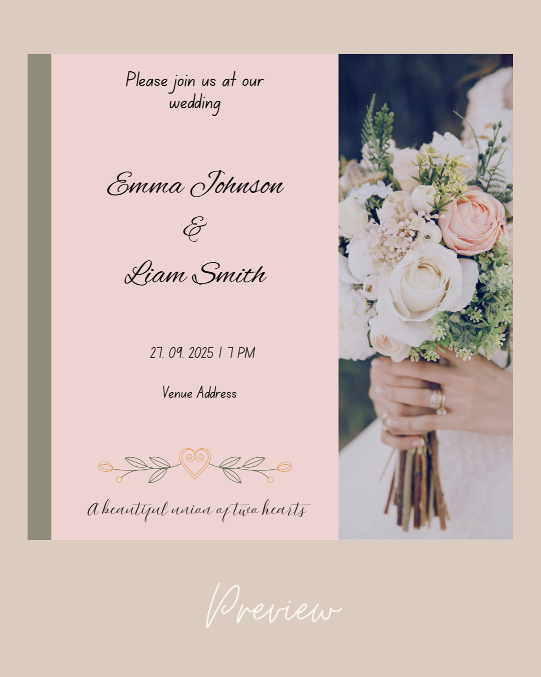 Elegant digital wedding invitation suitable for wedding, nikkah, or engagement. Fully editable in free Canva.
