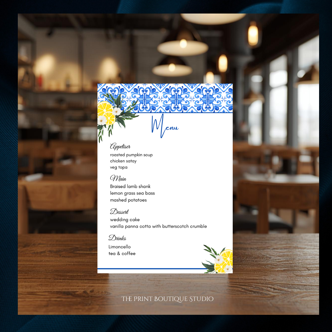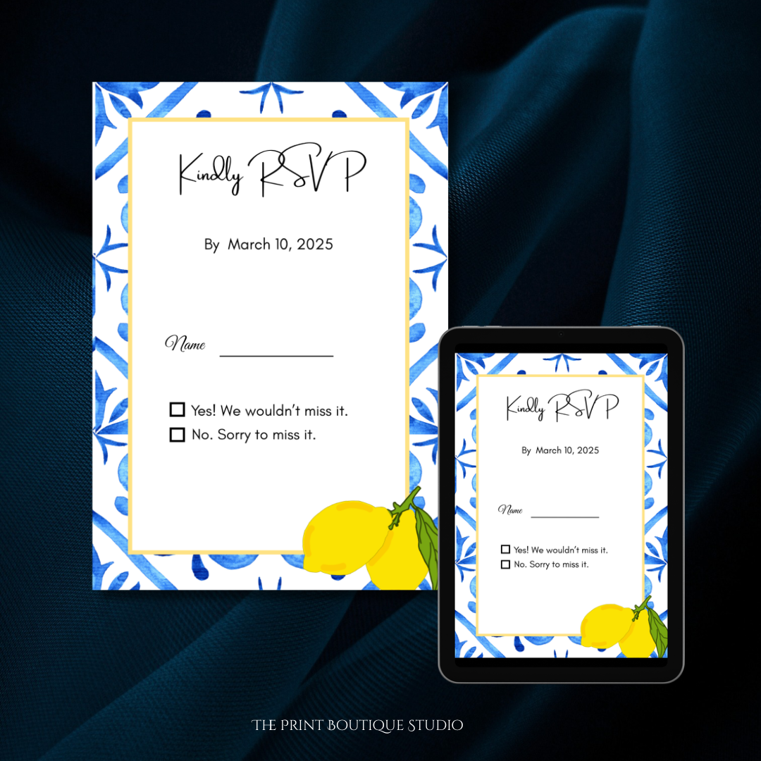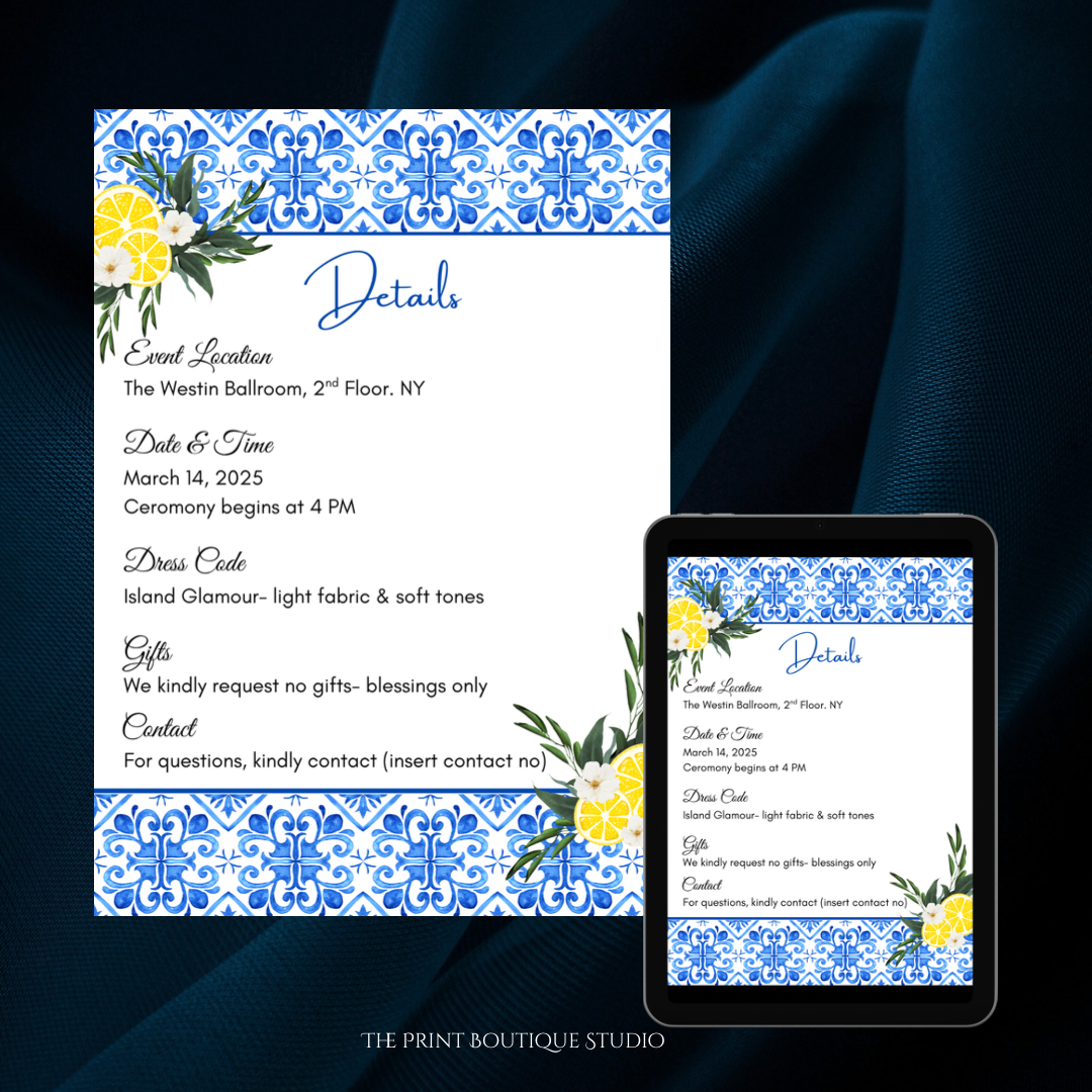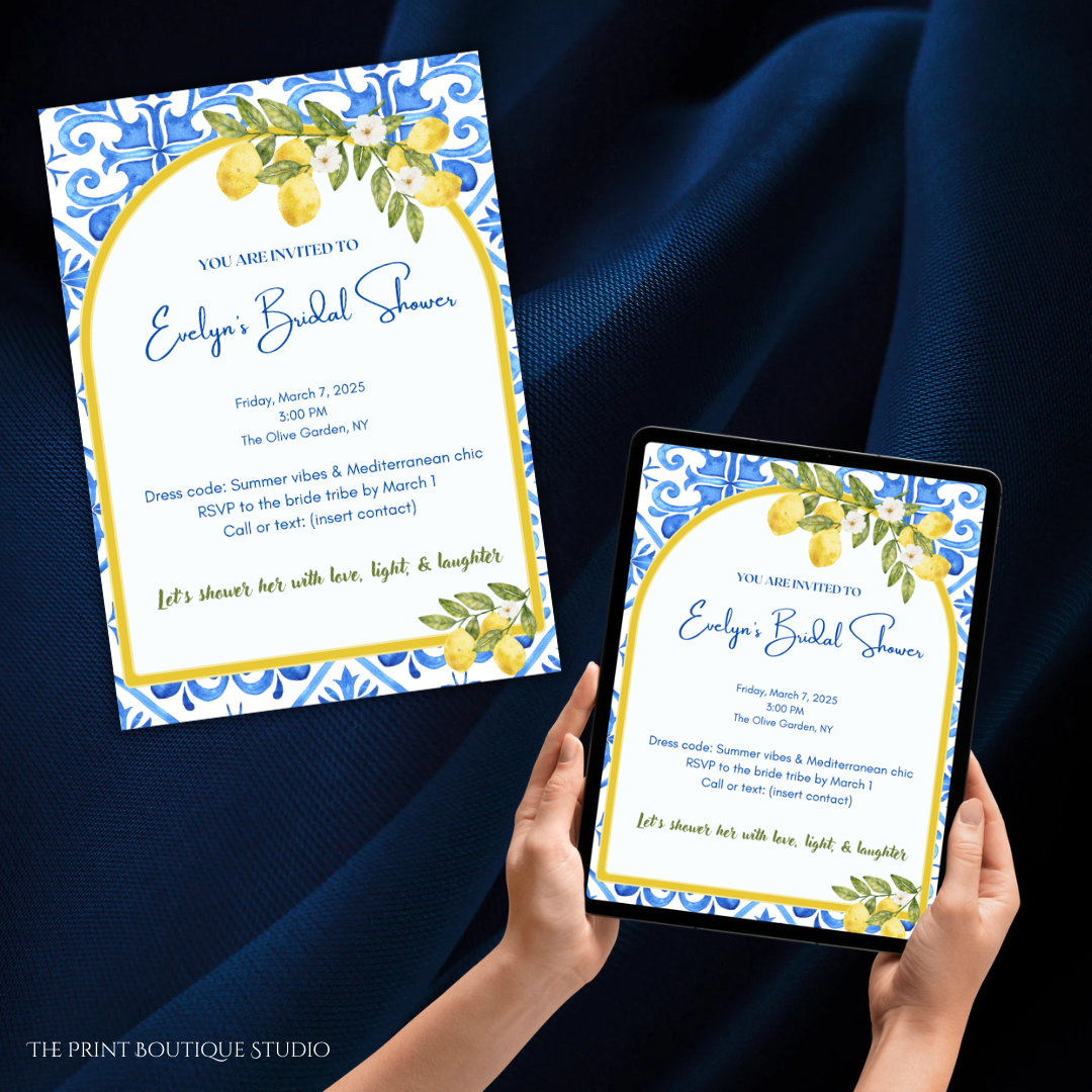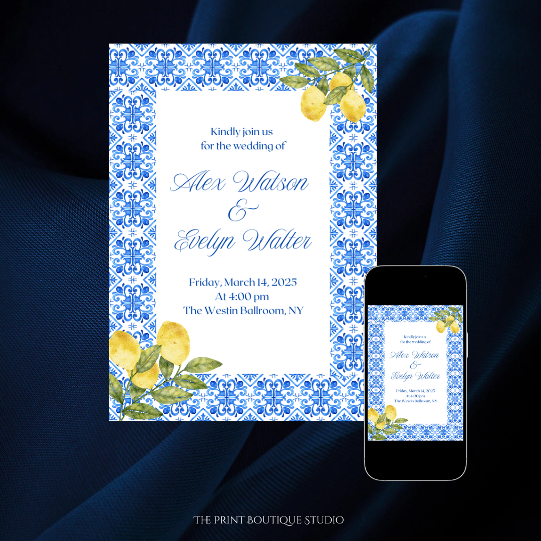 Impress your guests with this complete Mediterranean-themed invitation set — beautiful, coordinated designs, and stress-free.